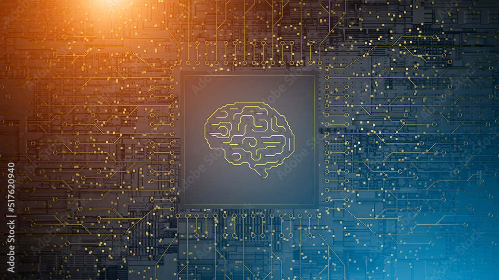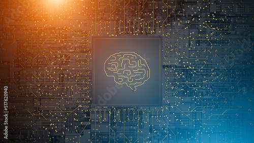 Wall mural 3d computer chip cpu with human brain. processor on technology board. ai, science, data, network con - Wall murals Wall mural 3d computer chip cpu with human brain. processor on technology board. ai, science, data, network con - Wall murals