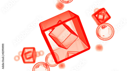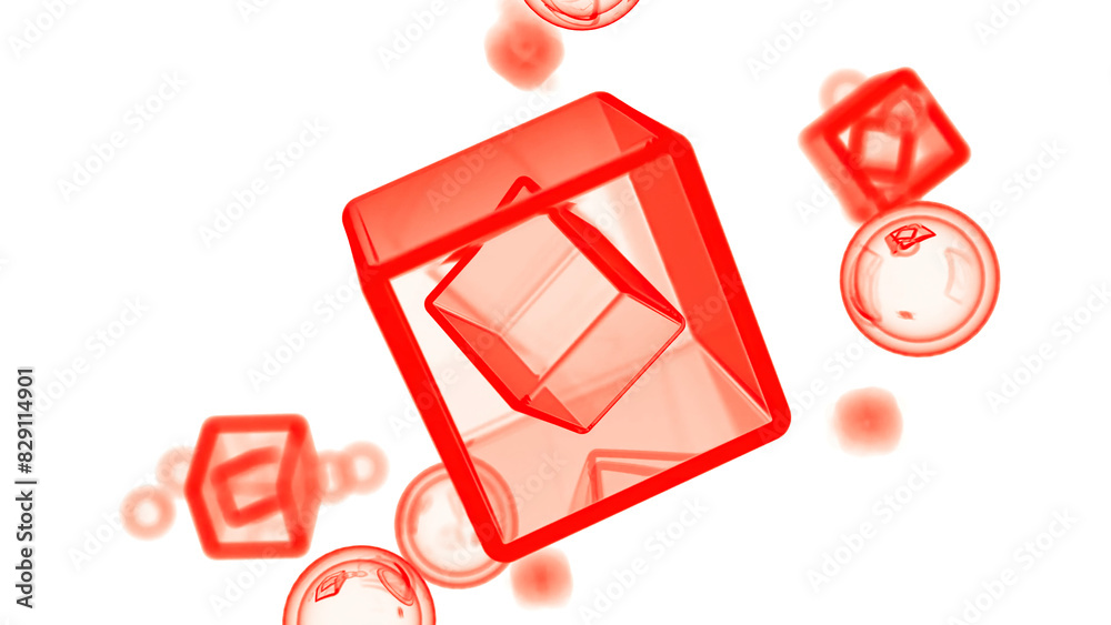 Wall mural 3d cubes rotating in virtual space. design. transparent cubes and round bubbles. - Wall murals Wall mural 3d cubes rotating in virtual space. design. transparent cubes and round bubbles. - Wall murals