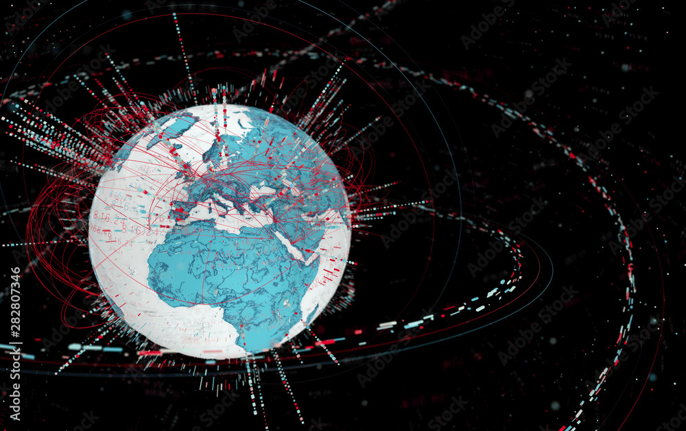 Wall mural 3d data globe - abstract illustration of a scientific technology data network surrounding planet ear - Wall murals Wall mural 3d data globe - abstract illustration of a scientific technology data network surrounding planet ear - Wall murals