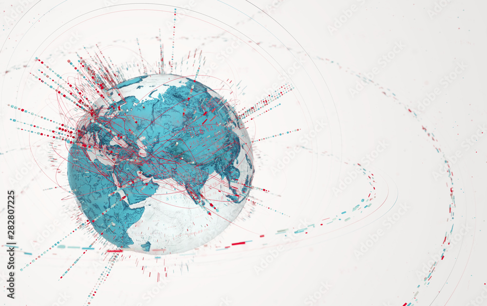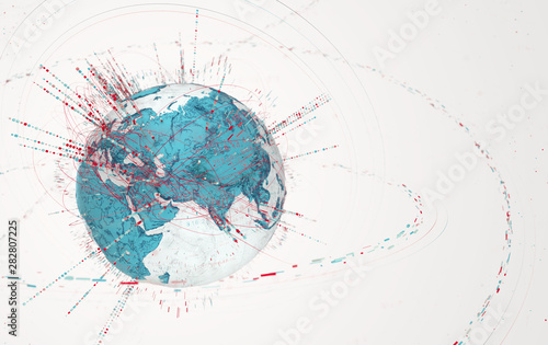 Wall mural 3d data globe - abstract illustration of a scientific technology data network surrounding planet ear