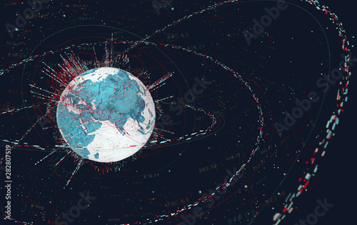 Wall mural : 3d data globe - abstract illustration of a scientific technology data network surrounding planet ear