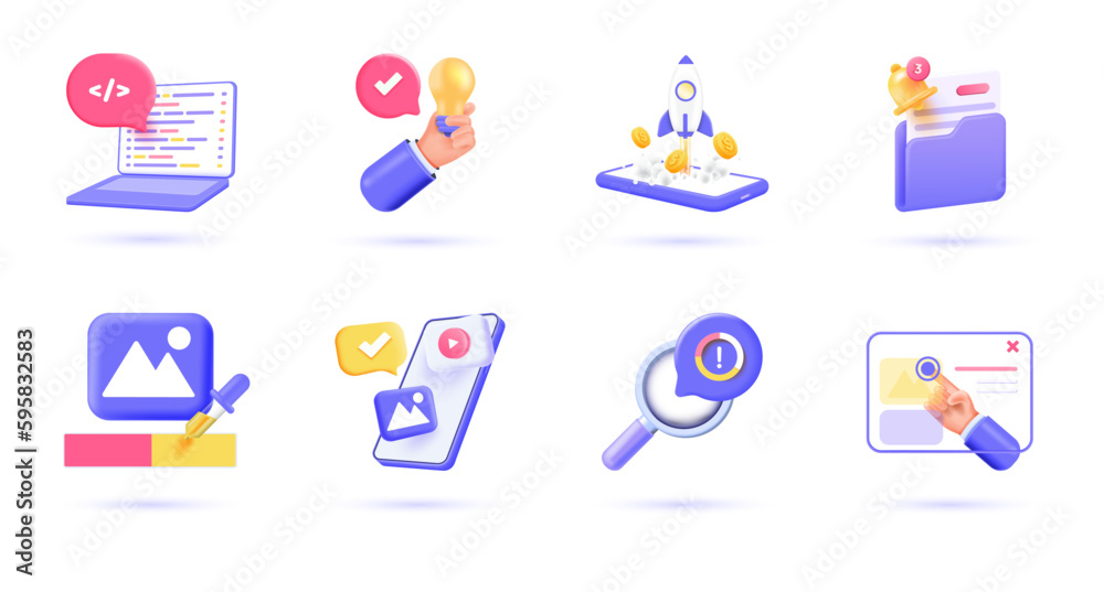 Wall mural 3d development icon set. trendy illustrations of programming, testing, coding, network security, pro - Wall murals Wall mural 3d development icon set. trendy illustrations of programming, testing, coding, network security, pro - Wall murals