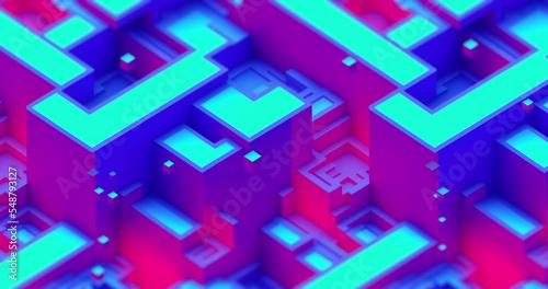 Wall mural 3d digital technology concept. isometric cubes and rectangles with data block in motion. cloud techn