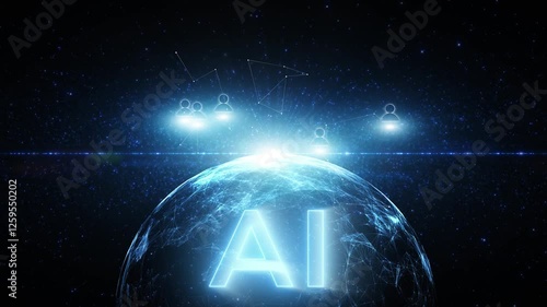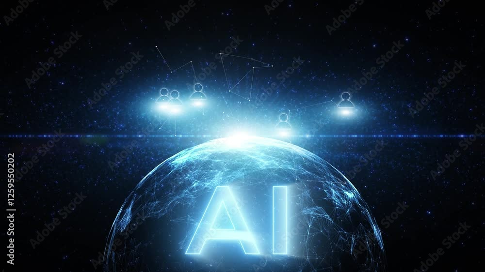 Wall mural 3d digital technology sphere with loop people icons and ai alphabet caption animation. - Wall murals Wall mural 3d digital technology sphere with loop people icons and ai alphabet caption animation. - Wall murals