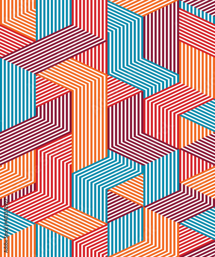 The watermark will not be included on Wall mural.: 3d dimensional lined cubes seamless pattern, geometric endless texture with lines and boxes, archite