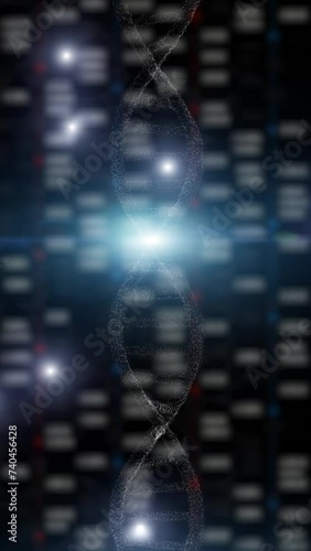 Wall mural 3d dna chain rotation on blurred digital data vertical background.