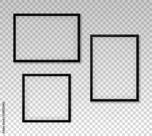 Wall mural : 3d frames - black frame isolated on background - realistic modern borders - black simple boarders with