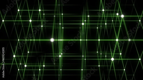 3d futuristic geometric cube with green dots and lines - abstract wireframe blockchain - science backgWall mural