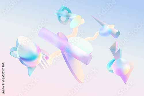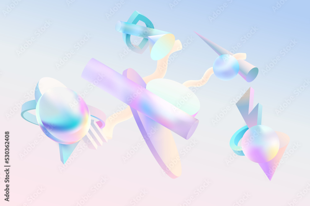 The watermark will not be included on Wall mural.: 3d geometric shapes in the glass morphism style - minimalistic abstract vector image -