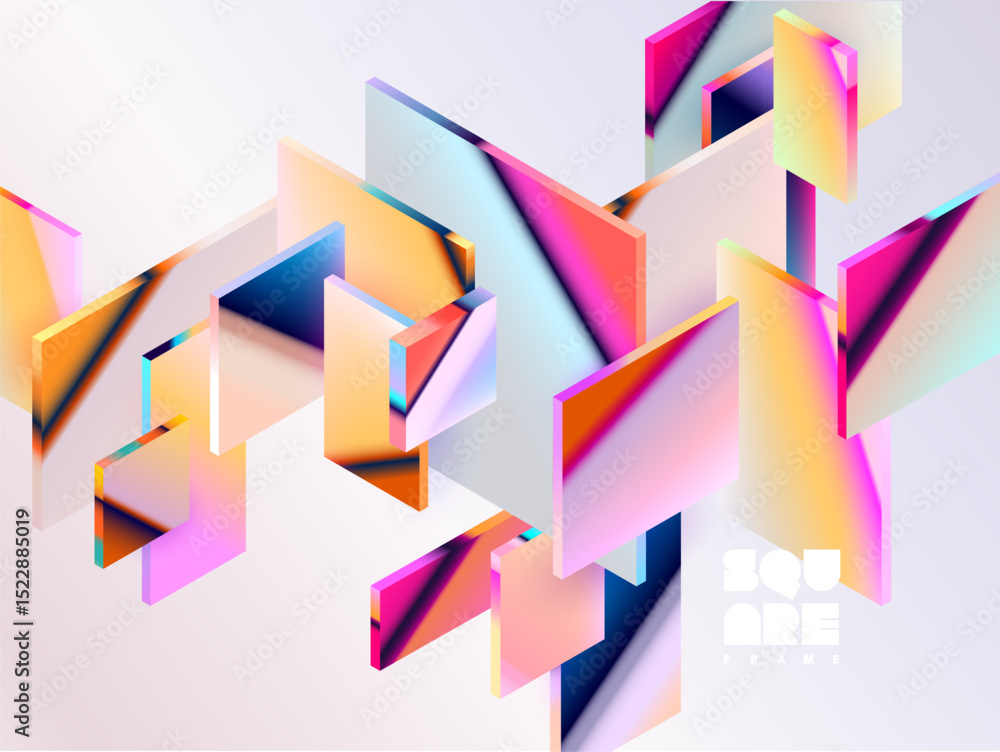 The watermark will not be included on Wall mural.: 3d glass squares and rectangles - abstract geometric background of colorful isometric shapes -