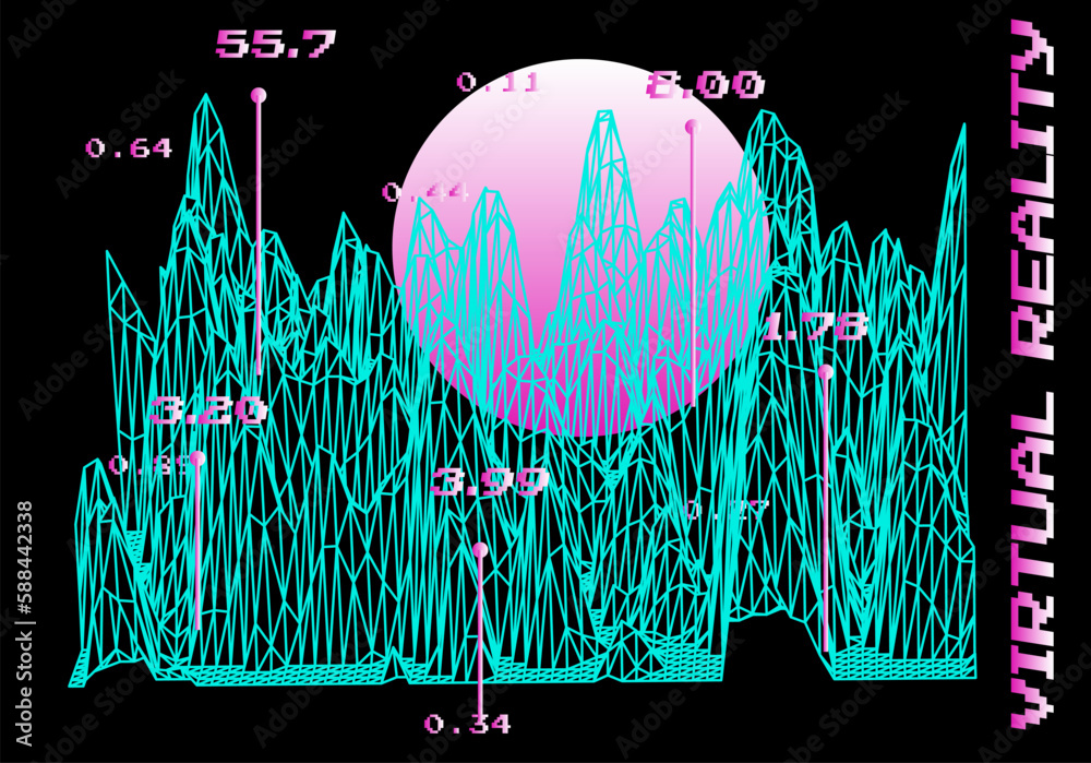 Wall mural : 3d glitched and distorted plane made of mesh - computer science and virtual reality subject illustrat
