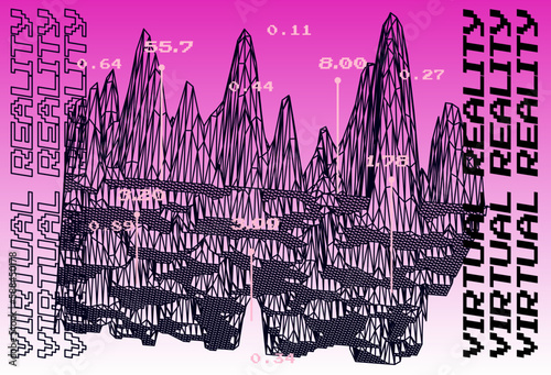 Wall mural : 3d glitched and distorted plane made of mesh - computer science and virtual reality subject illustrat