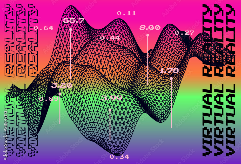 Wall mural : 3d glitched and distorted plane made of mesh - computer science and virtual reality subject illustrat