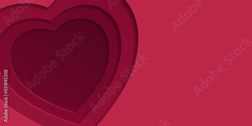 Wall mural : 3d gradient background - red paper cut out heart shape pattern in layers - color of the year 2023 viva