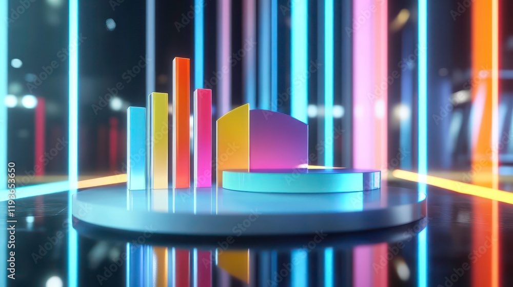 Wall mural 3d graphs on a sleek reflective surface in a modern setting. this futuristic and vibrant visual conc - Wall murals Wall mural 3d graphs on a sleek reflective surface in a modern setting. this futuristic and vibrant visual conc - Wall murals