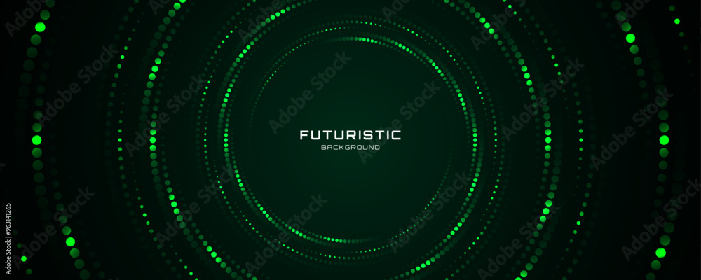 Wall mural 3d green circles techno background. big data visualization on dark space with dotted lines shape eff - Wall murals Wall mural 3d green circles techno background. big data visualization on dark space with dotted lines shape eff - Wall murals