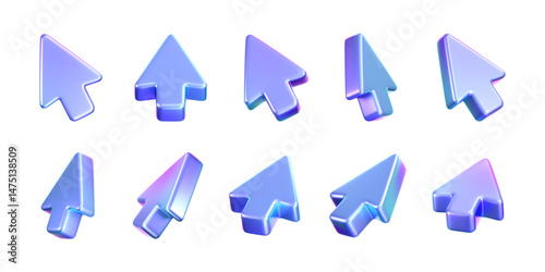 Wall mural 3d holographic arrow cursor icon set with a neon gradient, isolated on a dark background. render of