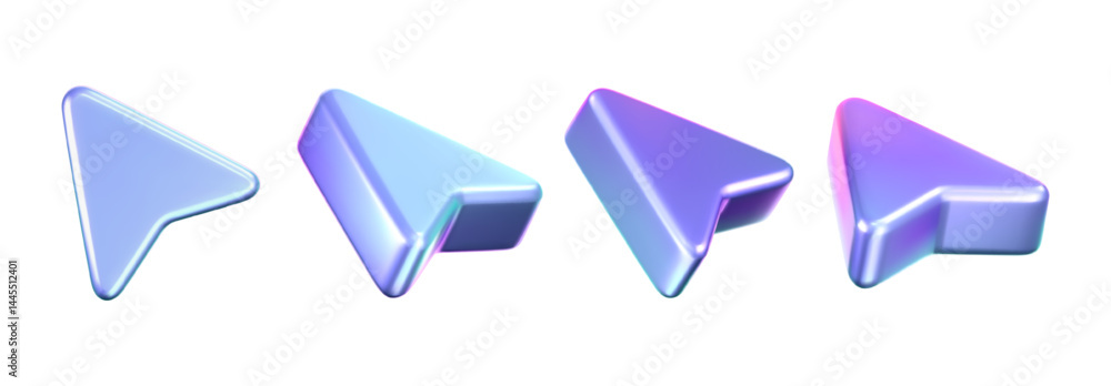 Wall mural 3d holographic arrow cursor icon set with a neon gradient, isolated on a white background. render of