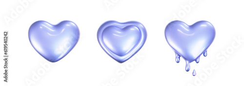 Wall mural 3d holographic hearts in y2k style set isolated on a white background. render of 3d iridescent chrom