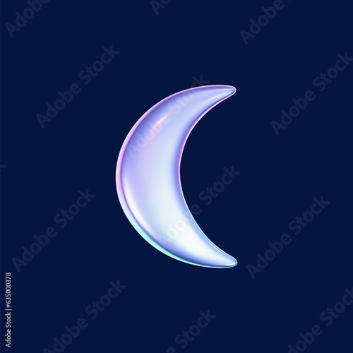 The watermark will not be included on Wall mural.: 3d holographic moon icon in y2k futuristic style isolated on dark background - render 3d cyber chrome
