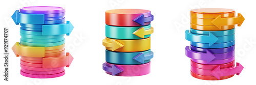 Wall mural 3d icon of a colorful database with arrows, white isolated background for clipping
