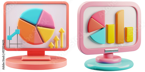 3d icon of a colorful desktop monitor with a pie chart, white isolated background for clippingWall mural