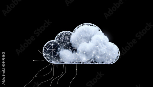 The watermark will not be included on Wall mural.: 3d illustration, concept image - embossed mesh representing internet connections in cloud computing i