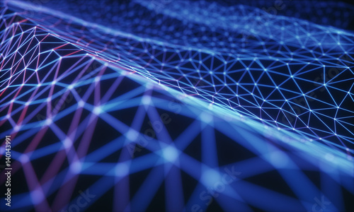 Wall mural : 3d illustration, concept image - embossed mesh representing internet connections in cloud computing -