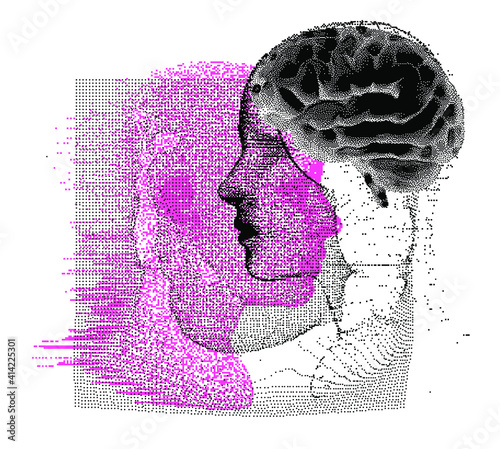 Wall mural 3d illustration human brain anatomy made of pixels and particles for neural network and machine lear