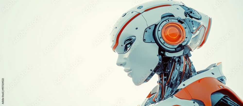 The watermark will not be included on Wall mural.: 3d illustration of a cool robot in profile view showcasing its unique design and features for an eng
