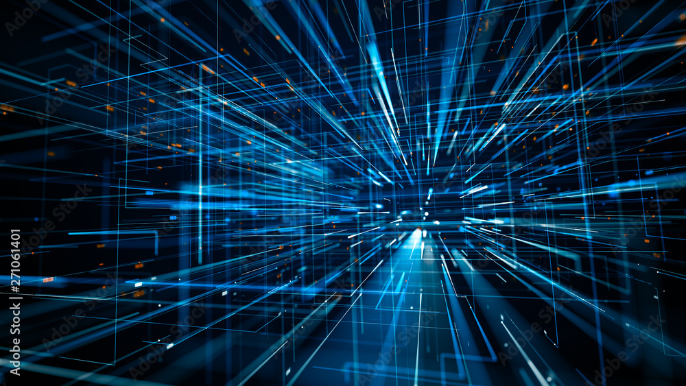 Wall mural 3d illustration of abstract scientific technology data binary code