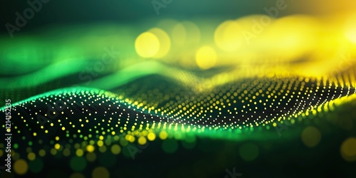 3d illustration of abstract wave particles with depth of field and bokeh lights - Wall mural