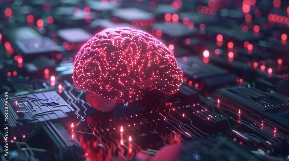 Wall mural : 3d illustration of brain processor concept with artificial intelligence technology highlighting neur