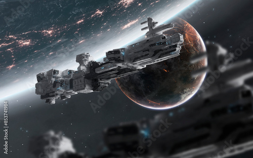Wall mural 3d illustration of cosmic scene with spaceship. high quality digital space art in 5k - realistic vis - Wall murals Wall mural 3d illustration of cosmic scene with spaceship. high quality digital space art in 5k - realistic vis - Wall murals