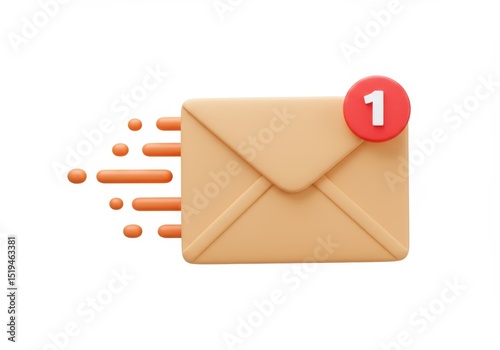 The watermark will not be included on Wall mural.: 3d illustration of envelope with a notification badge showing the number one isolated on white backg