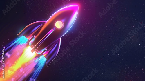 The watermark will not be included on Wall mural.: 3d illustration rocket space colorful holographic in dark background for business start up and scien