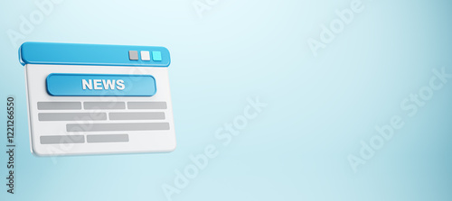 Wall mural 3d interface of a news website with minimal icons and text, isolated on a light blue background. 3d