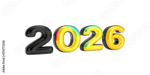 The watermark will not be included on Wall mural.: 3d iridescent year 2026 numbers with a colorful finish