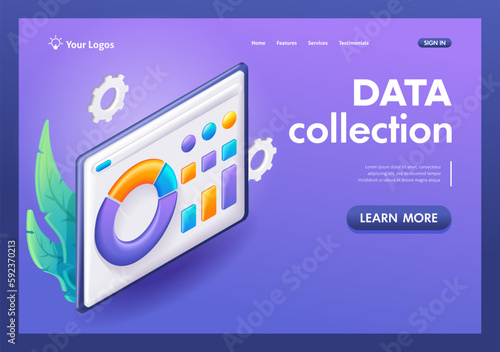 Wall mural 3d isometric, cartoon. data collection to provide information in the form of a diagram. concept of b