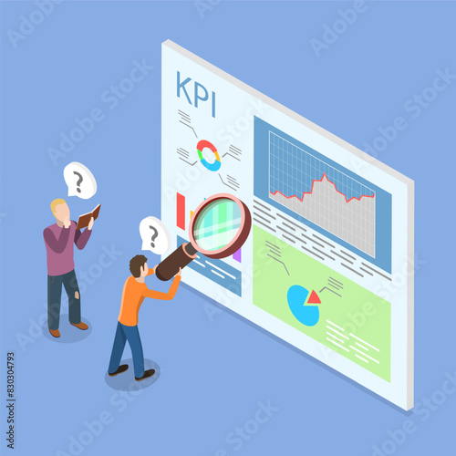The watermark will not be included on Wall mural.: 3d isometric flat vector illustration of kpi as key performance indicator, business intelligence met