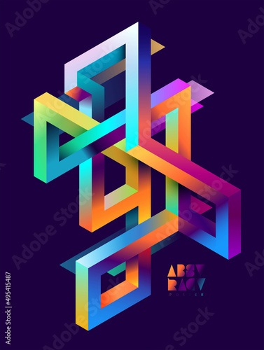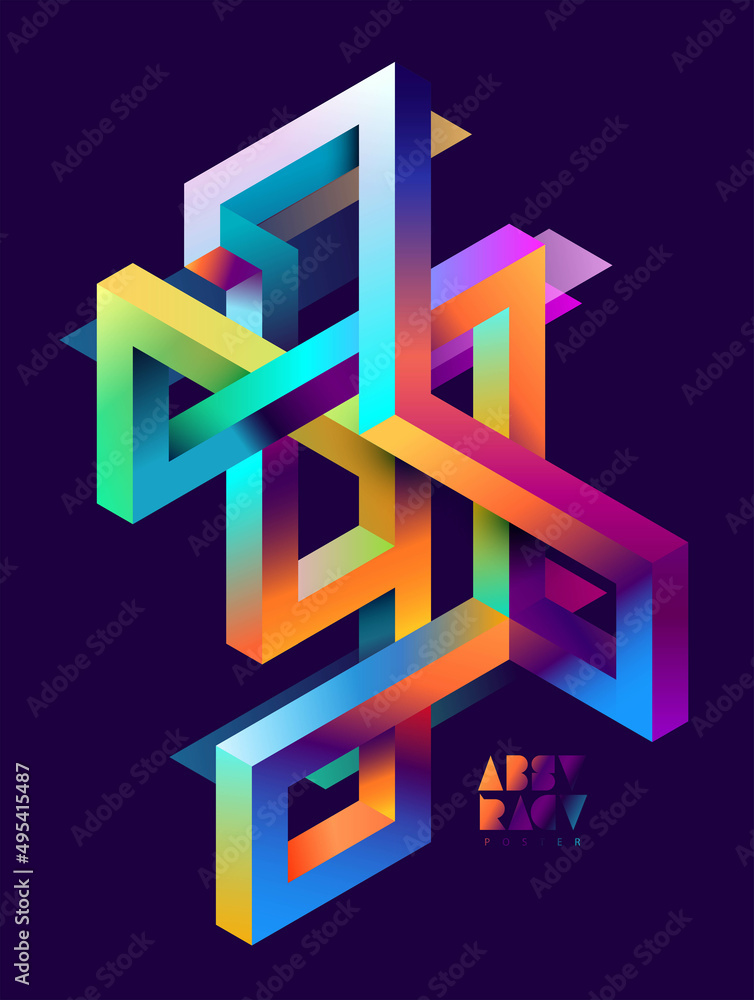 The watermark will not be included on Wall mural.: 3d isometric impossible colorful shapes - abstract geometric composition -