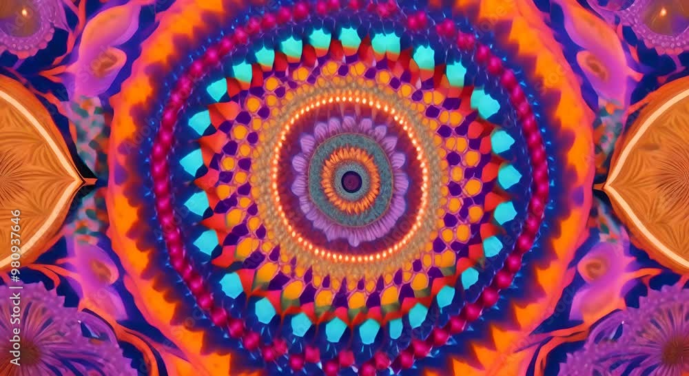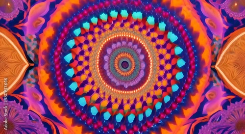 The watermark will not be included on Wall mural.: 3d kaleidoscope mandala abstract background of trippy art psychedelic trance to open third eye with