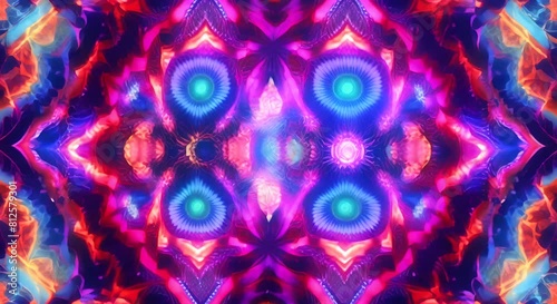 Wall mural 3d kaleidoscope mandala abstract background of trippy art psychedelic trance to open third eye with
