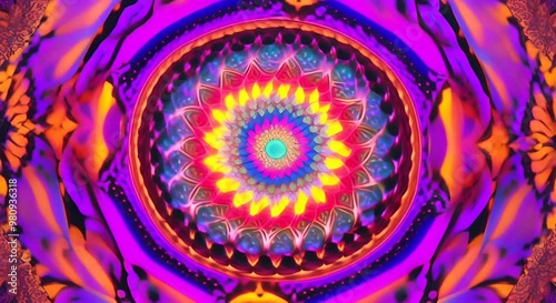 The watermark will not be included on Wall mural.: 3d kaleidoscope mandala abstract background of trippy art psychedelic trance to open third eye with