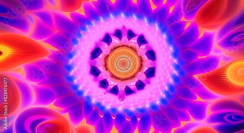 Wall mural : 3d kaleidoscope mandala abstract background of trippy art psychedelic trance to open third eye with