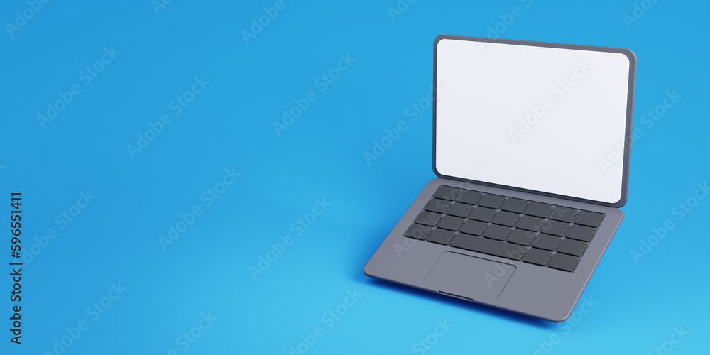 3d laptop with empty white screen on blue background with free space for text - float or levitate lapWall mural