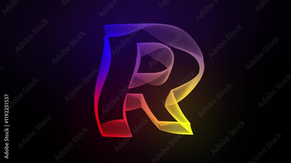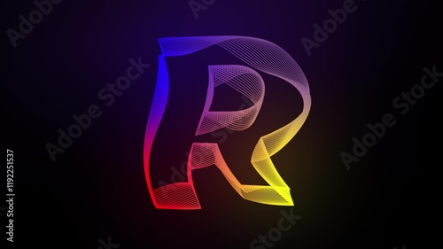 Wall mural : 3d letter r swirling lines animation on dark gradient background abstract dynamic motion graphics pa