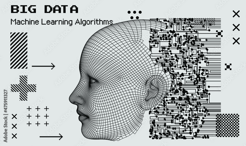 3d low poly wireframe model of a human head with pixel artifacts - conceptual image of ai (artificialWall mural