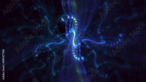 Wall mural : 3d manual rendering abstract blue fractal light background - its not ai generatd illustration -
