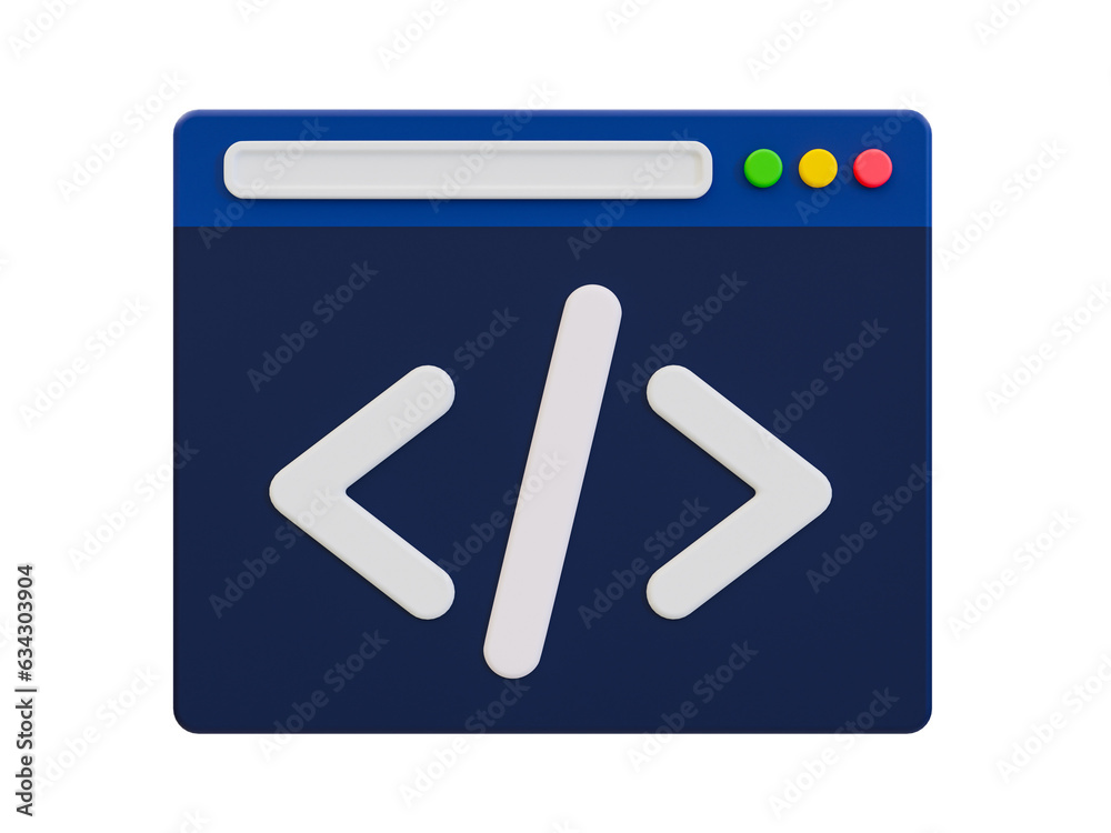 3d minimal program development concept - web browser with coding icon - 3d illustration - Wall mural
